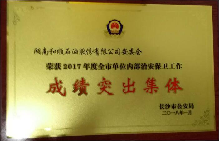 2017年度是国家全面落实“企业安全主体责任”的安全管理年,安全执法力度大、范围广。公司安委会在安委会主任、董事长赵忠的直接领导下,严格依法落实企业主体责任,从费用投入、全员责任上肩、员工培训、隐患排查整改、应急演练、制度流程、绩效考核等方面扎扎实实抓安全管理。在全体员工的共同参与下,员工安全责任意识、安全管理能力、制度流程建设、安全文化体系实现稳步提升,公司各业务部门全年未发生一般性安全生产责任事故,未发生任何行政性处罚,为公司的持续、稳健发展奠定了坚实基础。基于公司取得的安全管理成果,和顺石油获得了3个市级先进荣誉:长沙市政府“2017年度市级安全文化建设示范企业”、长沙市公安局“2017年全市单位内部治安保卫工作成绩突出集体”、长沙市运管局“2017年度全市道路运输行业‘落实企业安全生产主体责任年活动’先进单位”。